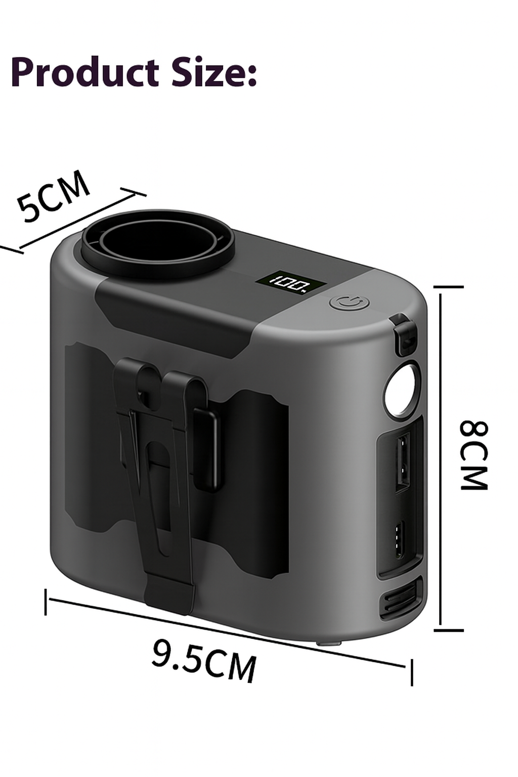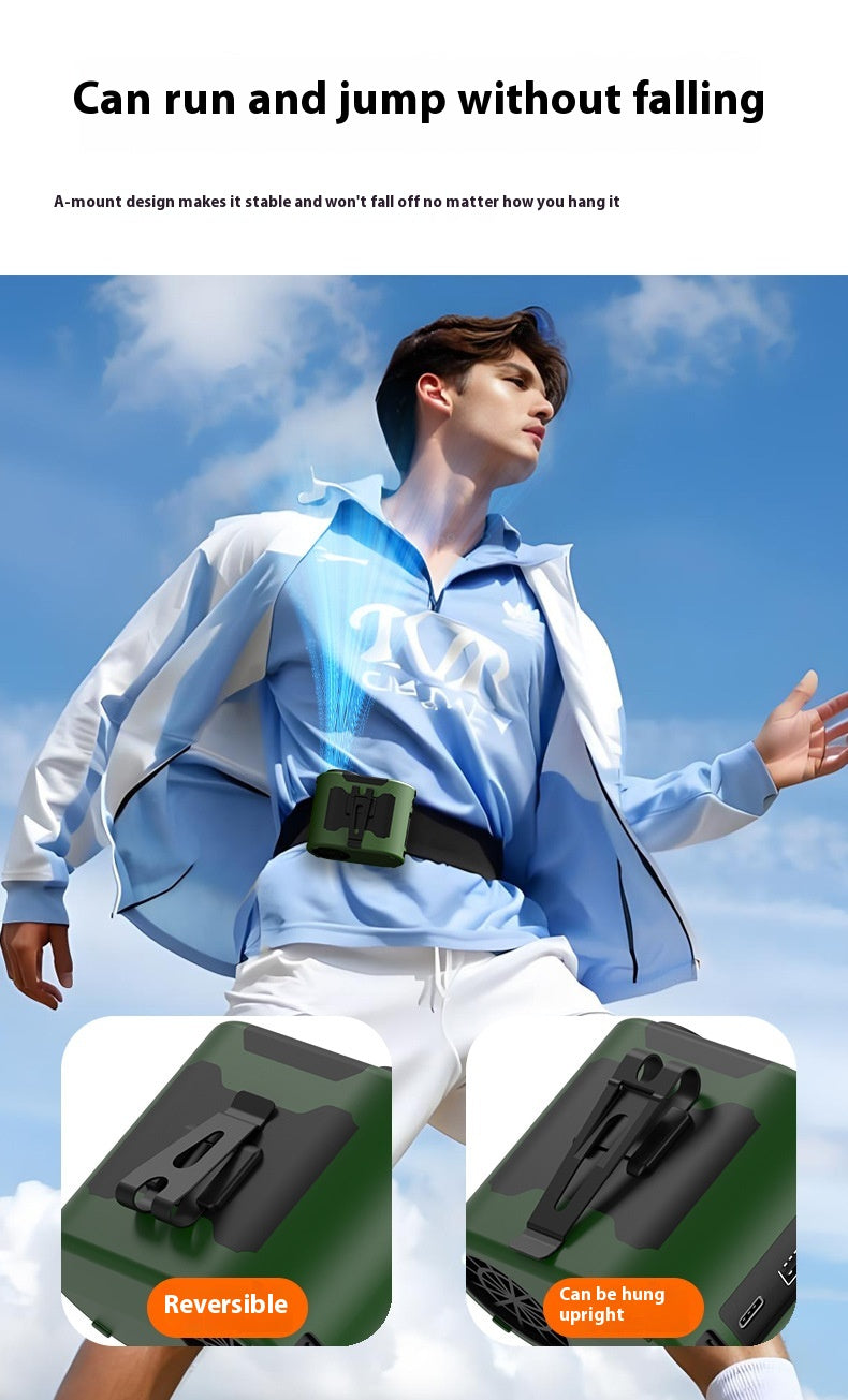 Den bärbara fläkten med midjefäste är designad för praktisk användning när du behöver kylning på språng. Den drivs av ett 10 000 mAh litiumbatteri och kan laddas via USB, vilket gör den både portabel och flexibel. Fläkten har borstlös motor, fem hastighetslägen och kan även fungera som powerbank för mobiltelefon.