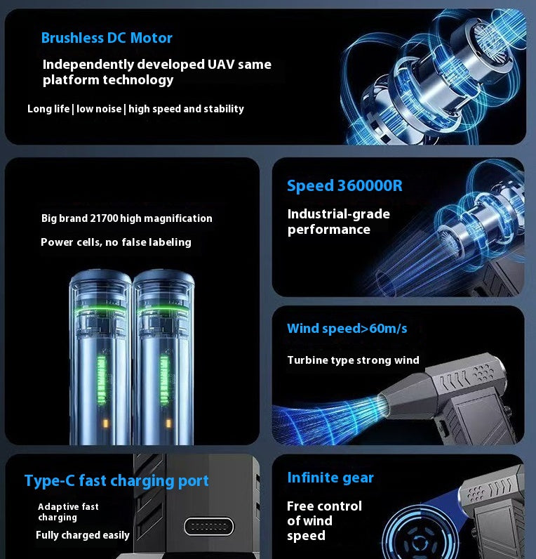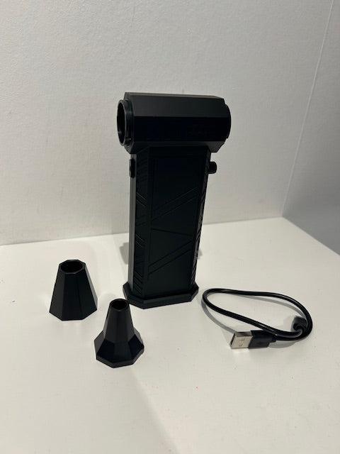 Denna handhållna turbofläkt är utformad för dig som behöver kontrollerad och effektiv luftström i ett smidigt format. Med batteridrift, USB-laddning och låg ljudnivå passar den för både praktisk användning och portabla miljöer.