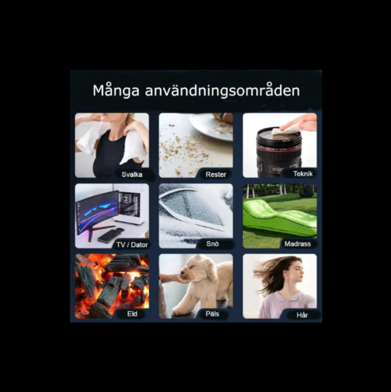 Fläkten är tillverkad i tåligt ABS-material och ger en stabil, riktad luftström, vilket gör den lämplig för torkning där precision och kontroll är viktigt.